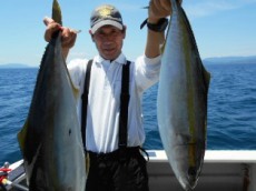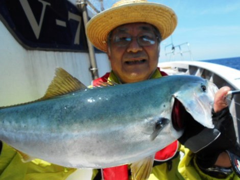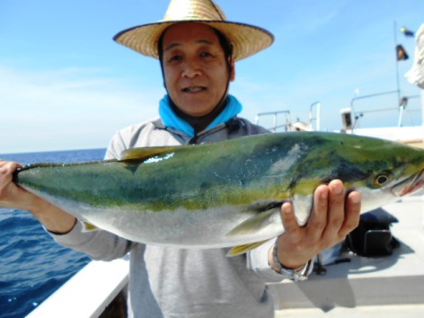 釣果は、真鯛(42cm) 1匹とメジロ(62~64cm) 3匹でした。