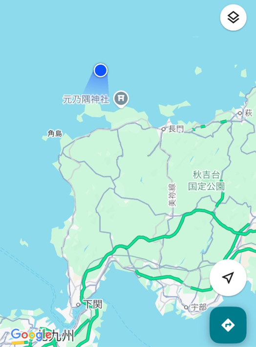 山口県油谷半島の北側、半島から約10km位沖に出ます。