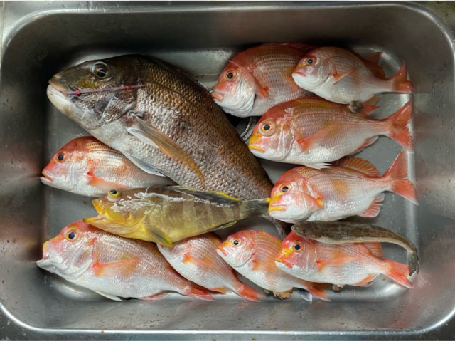 その後もレンコダイを釣り上げていましたが、中盤以降、兄貴や周りで大鯛が釣れるようになりました。大鯛を釣っていない私を見かねたのか、船長が電動リールの巻き上げスピードを14にする様アドバイスがありました。