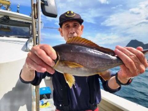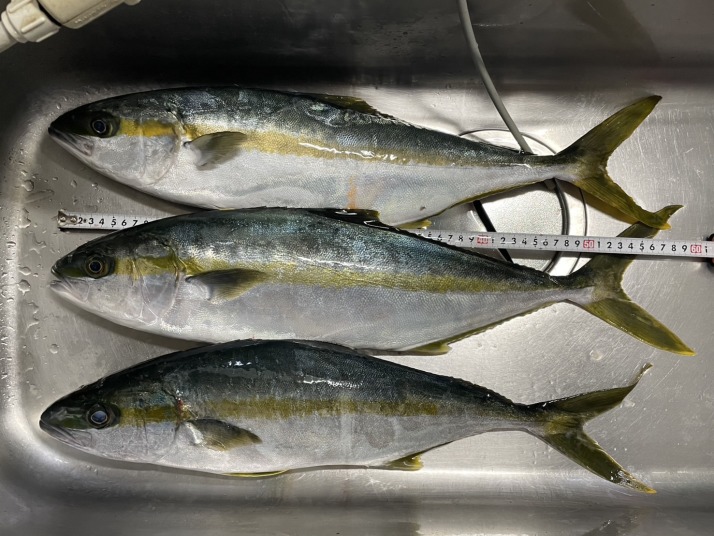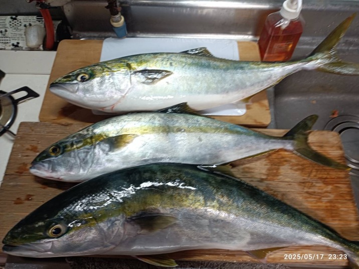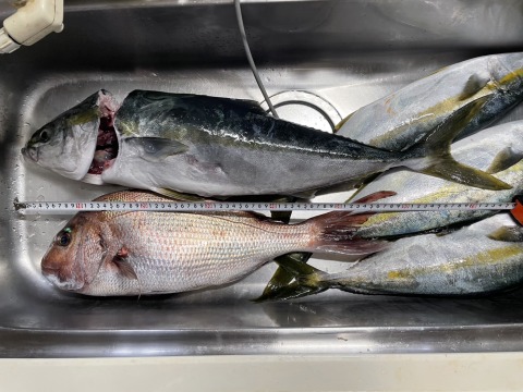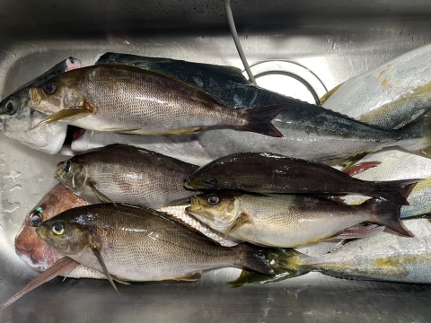 後半は潮の流れが真後ろになりかなり早いので1gのサルカンを付けて流した。100mまですぐに到達する潮流だが連続してヒラマサ2本、メジロ1本、イサキ6匹、カワハギ1匹が上がってきた。