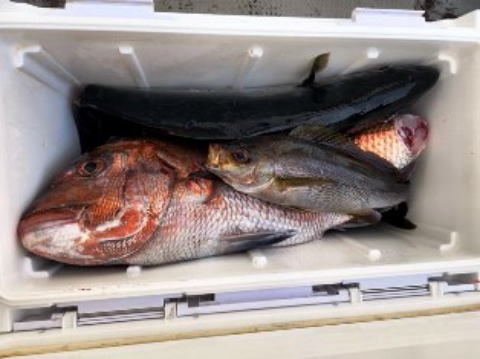 澤田さんのクーラーボックスは小さいので釣った魚が入りきりません。ヒラマサ1匹は船長に贈呈して納竿となりました。