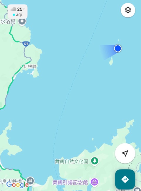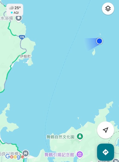 今日のポイントは冠島と沓島の中間にポツンとある地磯の少し北方です。