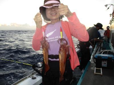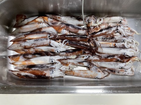 イカ釣りでは、腕が必要なイカメタルは早々に諦め、いつもの延縄手法にて、これまでで一番多くイカの姿を見ることができました。