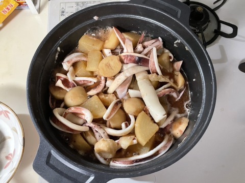 スルメイカ 24匹(胴長30cm弱位)→小芋や大根と一緒に煮付けにしました。