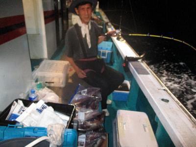 17時頃出船し、外海に出るとうねりのある結構な波があり、大型船の供進丸でも上下左右に揺さぶられながらゆっくりとした速度でポイントを目指す。私はエアコンの付いているキャビンに居たが、エアコンの効きが悪く、最初は暑くて汗だくになっていたが、そのうち船の揺れで気分が悪くなり、日汗の様な変な汗をかくようになった。もう限界だと思った頃、やっとポイントに到着し、命拾いした。