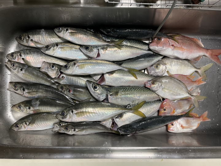 本命のマダイは釣れなかったが、我が家の好物のマアジがそこそこ釣れて、満足しています。